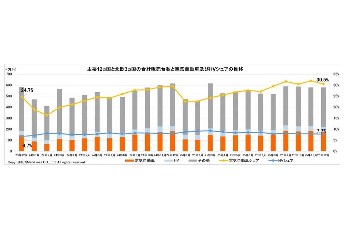 - 【話題・市場】世界のEV販売、1月は前年比3%減 米中が重し